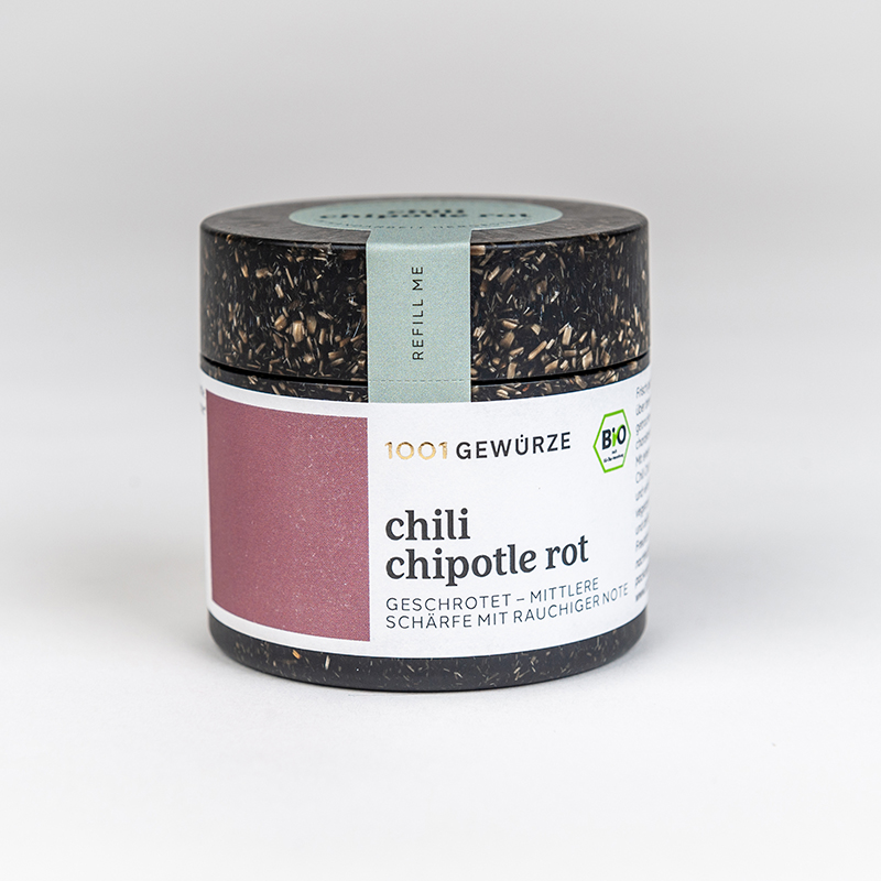 Frisch gepflückt werden die Schoten über brennendem Mesquite-Holz getrocknet und erhalten dadurch ihr charakteristisches Rauch-Aroma. Mit einem mittleren Schärfegrad ist Chili Chipotle vielseitig anwendbar und verleiht auch veganen und vegetarischen Speisen herzhafte und deftige Noten.