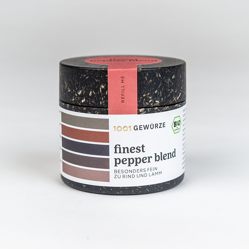 Kann man ein Gewürz elegant nennen? Dieser Pfeffer-Mix ist es einfach! Ein sehr Kann man ein Gewürz elegant nennen? Dieser Pfeffer-Mix ist es einfach! Ein sehr besonderer Begleiter zu Rind und Lamm, der sich mit seinen feinen Noten von Kakaobohnen und Schwarzkümmel auch bei einem klassischen Abendbrot sehr gut zu luftgetrocknetem Schinken oder kräftigem Käse macht.