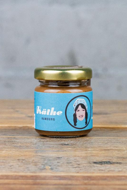 Käthe und Fiete sind unser Beitrag zum Thema: Frühstück in gut! Beides hochwertige Nussaufstriche mit echter Schokolade statt Kakaopulver und einem Krokant-Crunch im Abgang. Käthe kommt in heller Vollmilchschokolade daher, und Fiete brilliert mit 85%er Edelbitterschokolade. Käthe ist wie Nougat aufs Brot, mild, nussig und beinahe magisch! Die freundliche lächelnde Deern auf dem Etikett ist übrigens Schokovida Chefin Berit Windisch höchst selbst!
