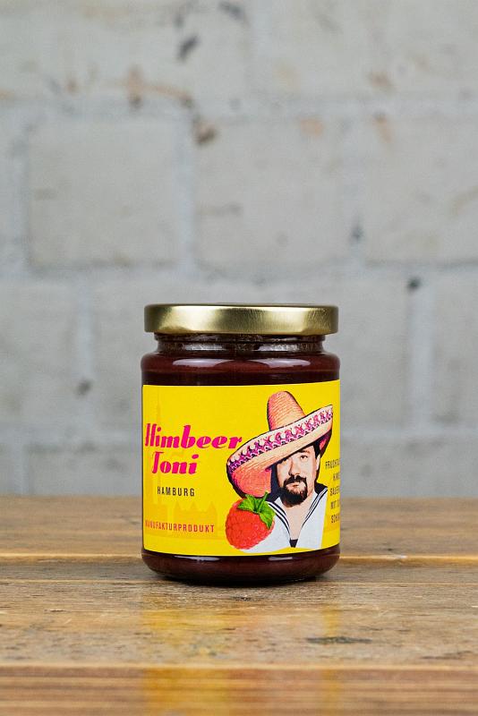 „Ich bin doch nicht dein Himbeer Toni!“ nölen Leute, die selten Toni heißen und noch weniger als Depp vom Dienst durchgehen wollen. Wir interpretieren unseren Himbeer gekonnten Aufstrich aus fruchtigen Himbeeren, Sauerkirschen und dunkler Schokolade. Unser Fruchtaufstrich ist nicht nur ein Freund des Frühstücks, sondern schmeckt auch gut zu Kaiserschmarren oder als Preiselbeer-Alternative zu Wiener Schnitzel. Und noch was: Himbeer Toni zeigt außen Papa Norbert Rohlf als Flachland-Mexikaner, sein Hut aber ist eigentlich aus dem nahen Gran Canaria. Macht nichts, Toni ist eben einzigartig!