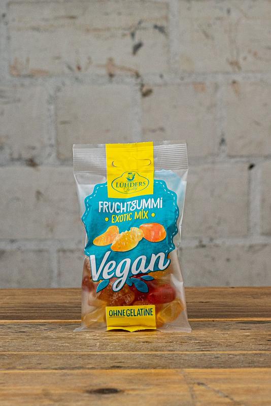 Veganer Fruchtgummi Mix mit den Geschmacksrichtungen Apfel, Ananas und Mango, ohne Gelatine