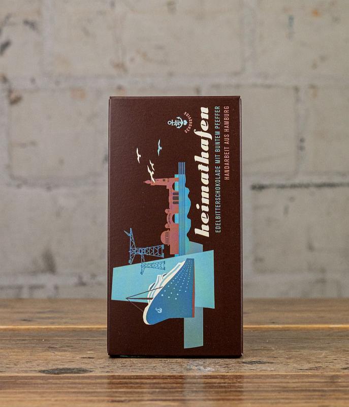 Zu Hamburg gehören nicht nur der Michel, „Hummel, Hummel“ oder das legendäre Ohnsorg-Theater.Diese Edelbitterschokolade haben wir zu Ehren der Hamburger Gewürzhandelstradition (Stichwort: Speicherstadt!) entworfen und deshalb mit buntem Pfeffer aufgepimpt. Grob granuliert und wohl dosiert, bringt dessen feine Schärfe und der zarte Schokoladenschmelz sämtliche Geschmacksnerven auf Trab.
